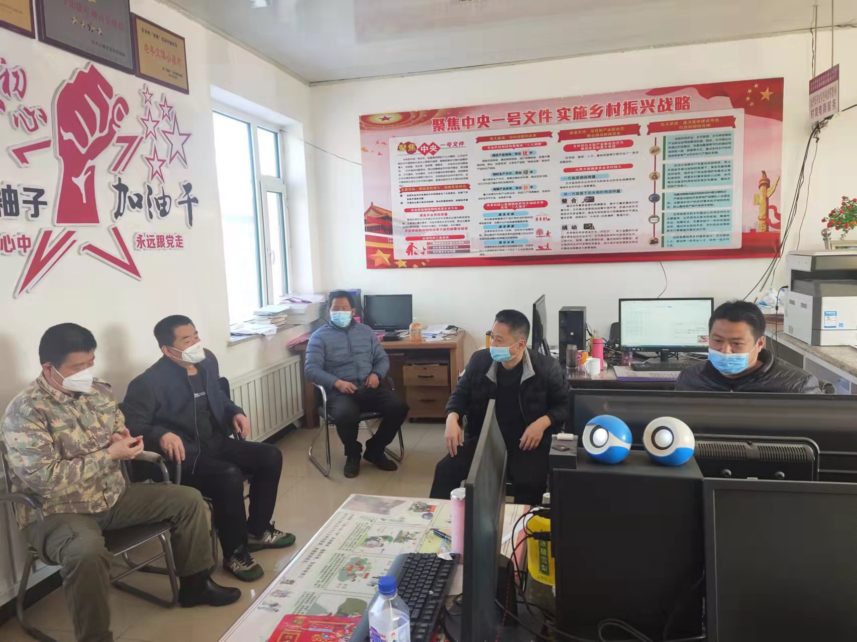 通过交流了解到,疫情期间驻村干部们通过微信群、悬挂横幅、大喇叭循环播放提醒等多种方式劝导村民不聚会、不聚餐、不走亲访友,开展全方位的疫情防控宣传工作;做好宣传的同时,在入村路口设置卡点做到24小时不间断值守,严控中高风险地区人员输入,每天对进出人员测量体温、检查健康码和行程卡、做详细登记,为群众“守门”;全面启动全员核酸检测工作期间,驻村干部全员到位,提前做好群众通知工作、提前谋划现场布置、确保核酸检测工作安全、稳妥、高效推进,为检测工作提供了强有力的保障。